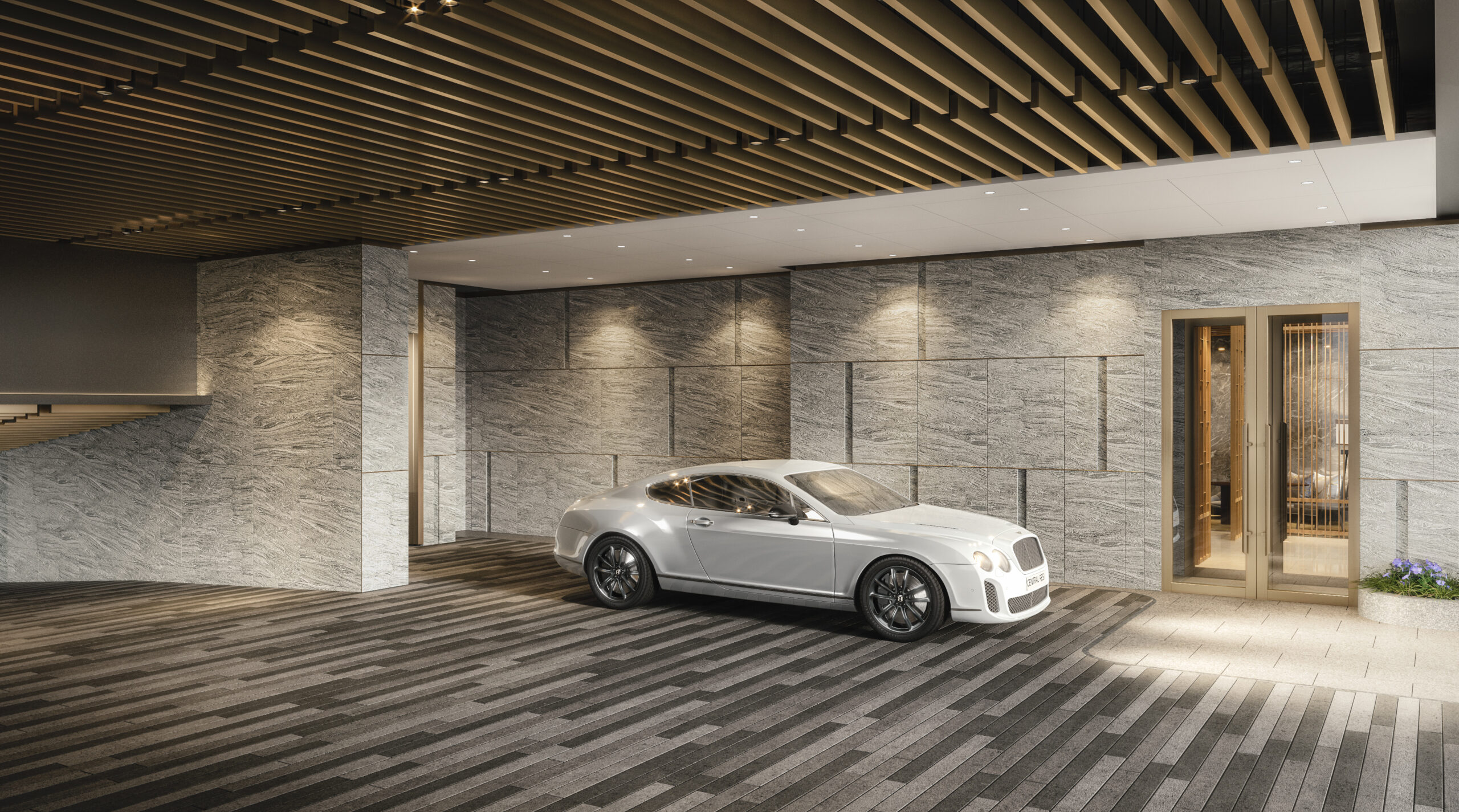 项⽬外观以⽇本传统⽊建筑工艺为轴,并注入「缟しま」及「格⼦こうし」设计元素,透过极简流线美感与交错的格⼦饰框,以传统刻画当代建筑艺术。